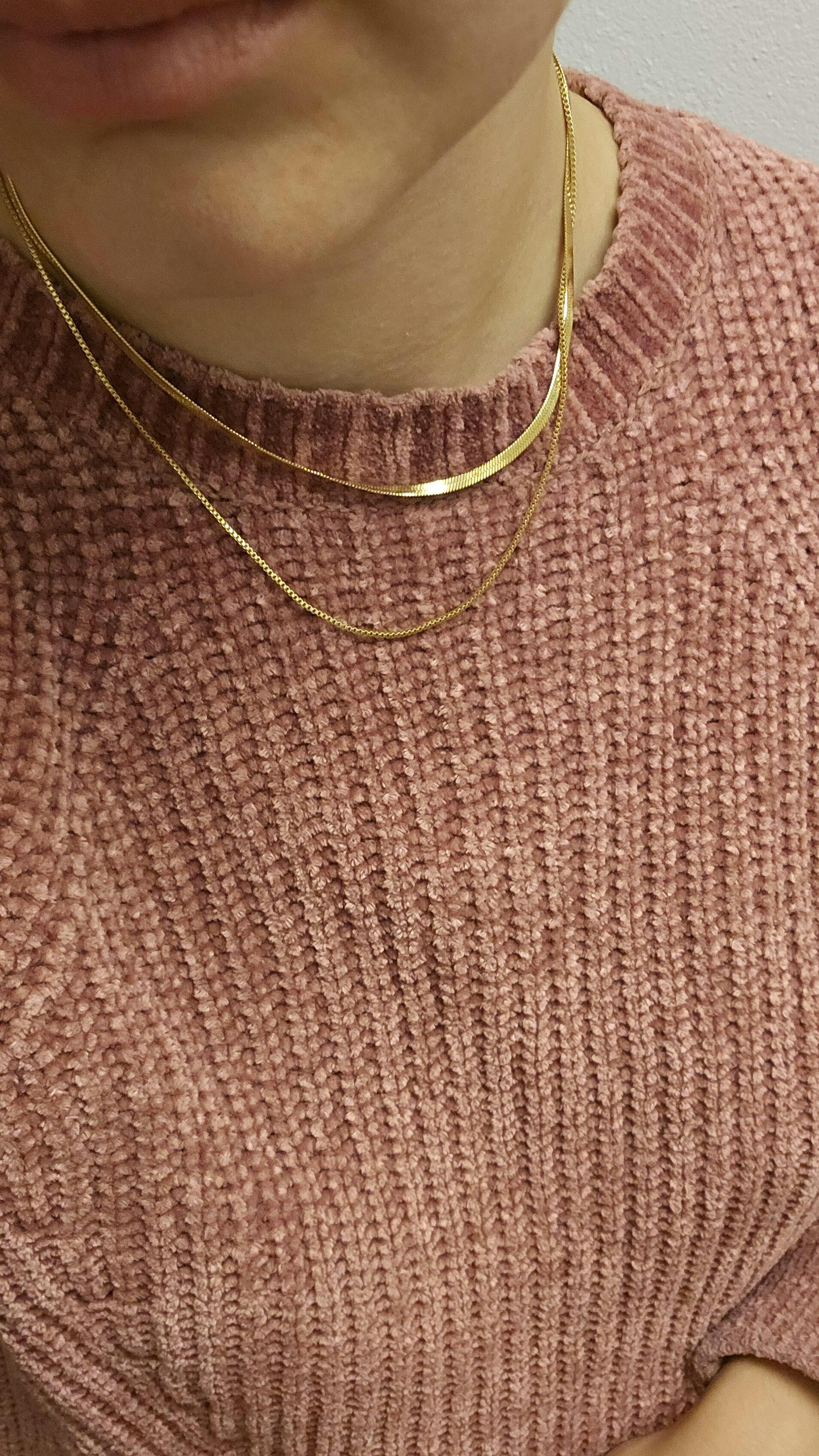 Ergänzt wird sie mit einer feinen Box Kette, die den Layer-Look perfekt abrundet. Kann alleine getragen oder mit weiteren Ketten ergänzt werden.