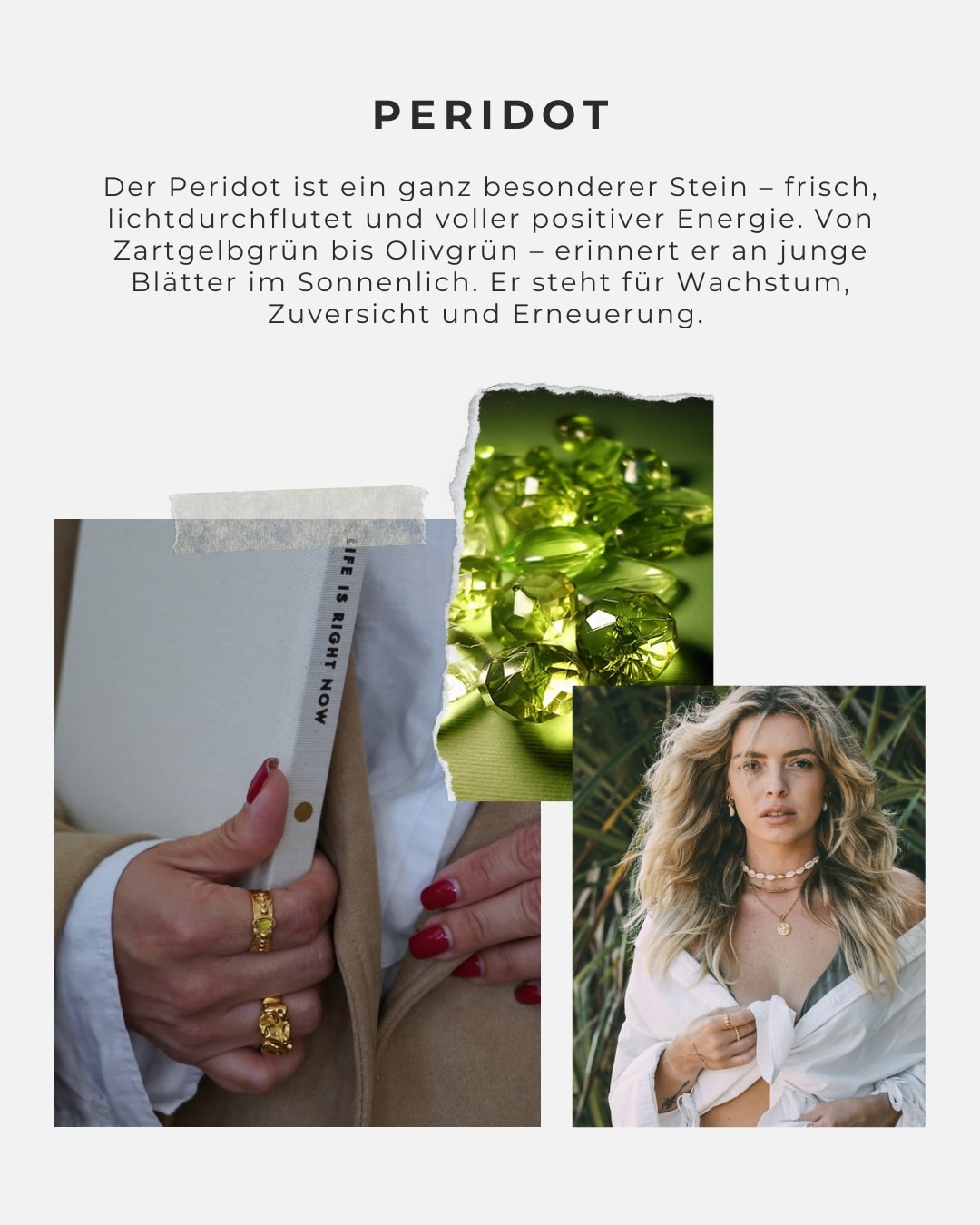 Dieser Vintage inspirierte Ring mit einem Peridot in der Mitte gibt jedem Look einen Wow-Effekt.