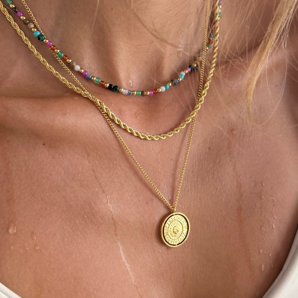 Wichtig ist nicht nur die Anzahl, sondern vor allem, wie die Ketten harmonieren. Wechsle zwischen Ketten mit und ohne Anhänger ab um einen chaotischen Look zu vermeiden.