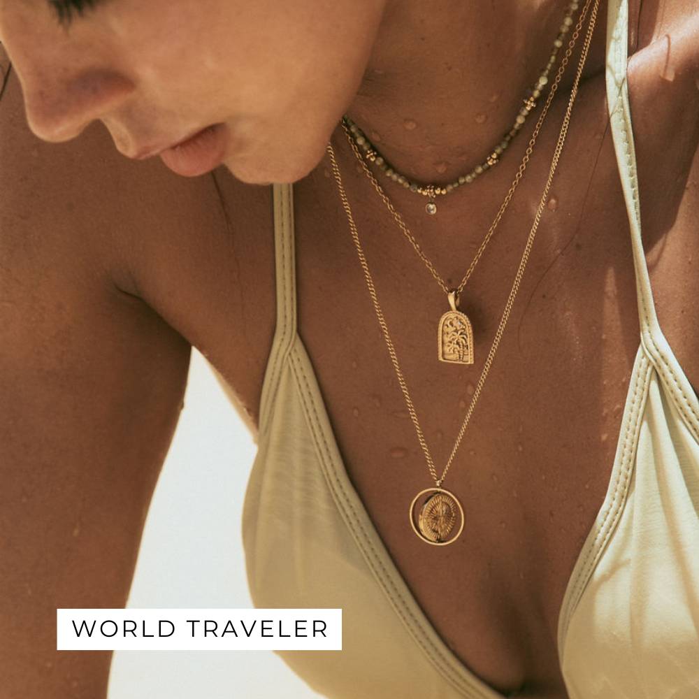 Wähle ein einheitliches Thema für dein Schmuck-Layering, um deinem Look mehr Harmonie zu verleihen.