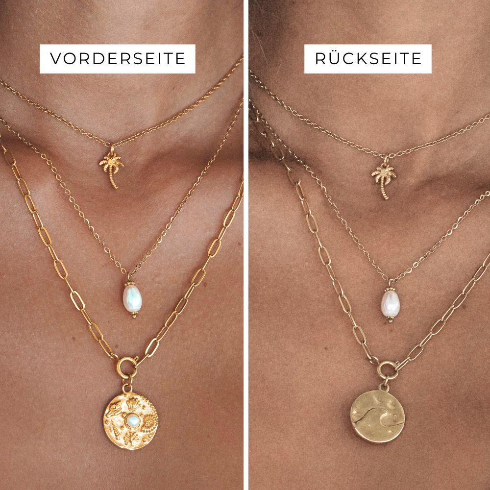 Beachte auch die Rückseiten. Viele unsere Ketten können auf beiden Seiten getragen werden. So bietet dir eine Kette gleich mehrere verschiedene Looks.