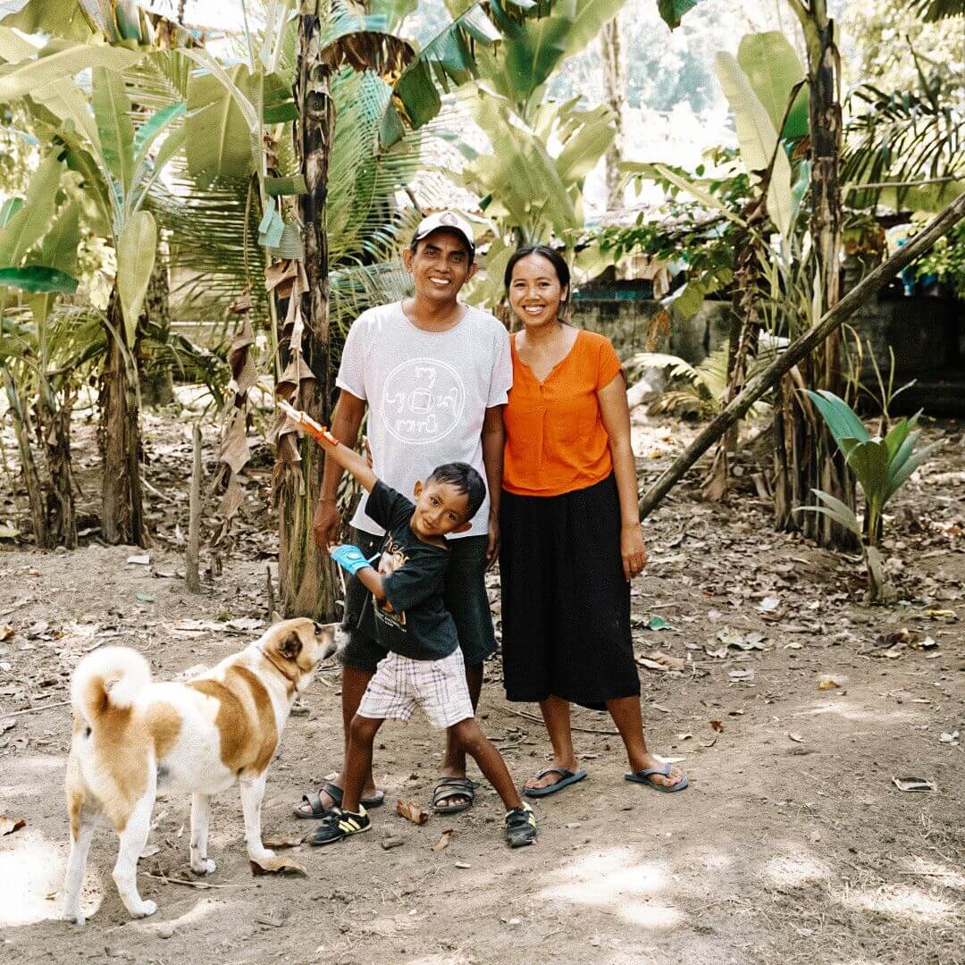 Wir verstanden uns sofort super und durften kurze Zeit später die ganze Familie kennenlernen. Ein typisch authentisches balinesisches Haus. Vier Generationen leben dort, Hunde begrüssen uns mit ihrem bellen, Hühner laufen herum und im hinteren Gartenbereich ist sogar eine Kuh zu Hause. Ein angenehmer Empfang. Und dort, in einer Ecke, der Arbeitsbereich, wo die kreativen Tätigkeiten vorgenommen werden. Fantastisch, genau so haben wir es uns vorgestellt…