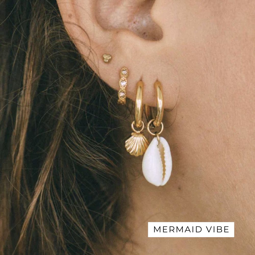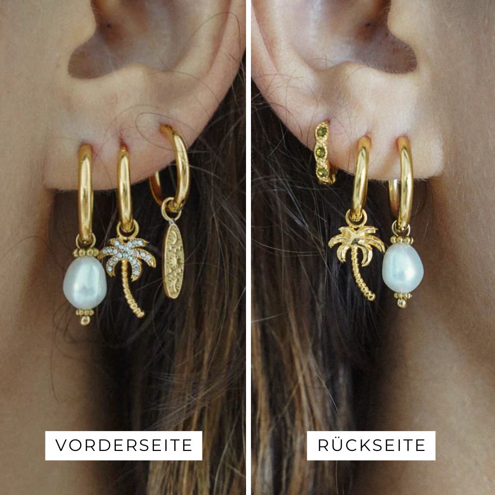 Auch Ohrringe können thematisch kombiniert werden. Kreiere zum Beispiel einen Beach-Style mit Muscheln oder einen Vintage-Vibe mit Perlen. Das sorgt für einen harmonischen Look.