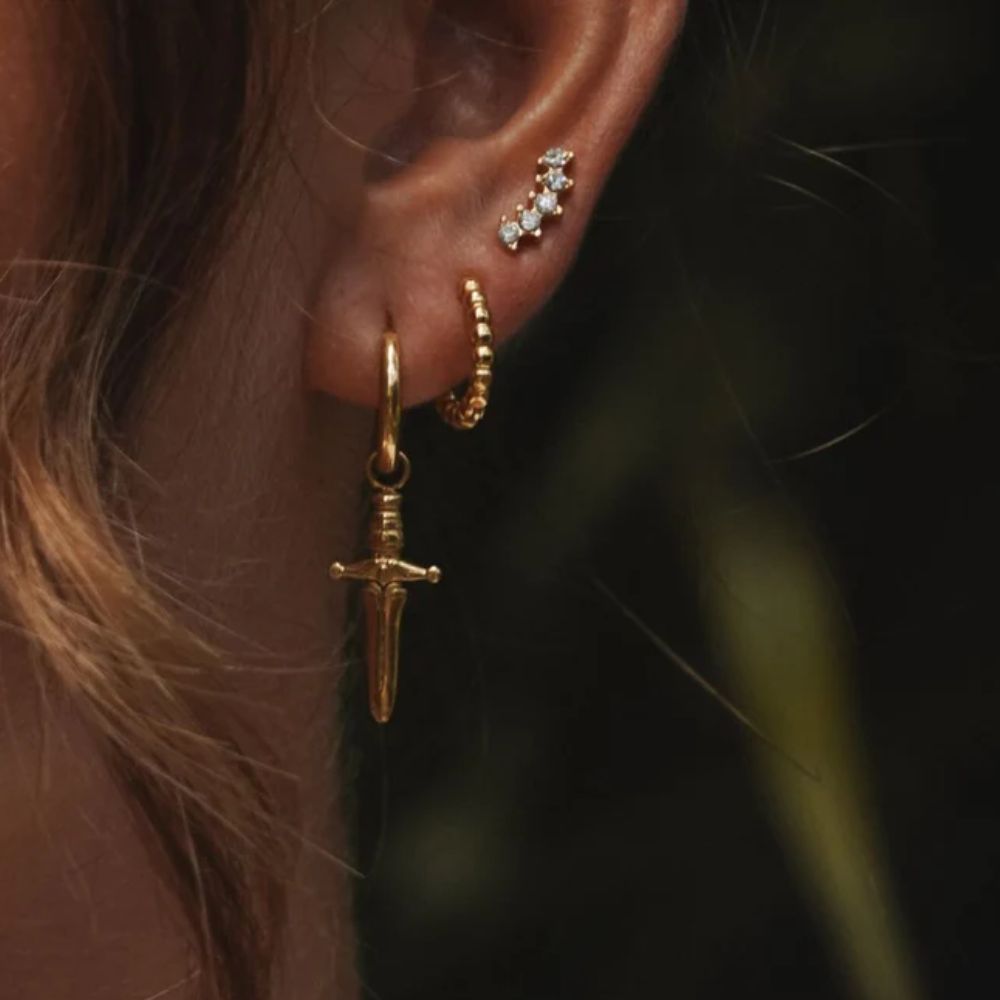 Der grösste Ohrring, Stecker oder Anhänger wird vorne getragen, und nach hinten hin werden die Stücke kleiner.