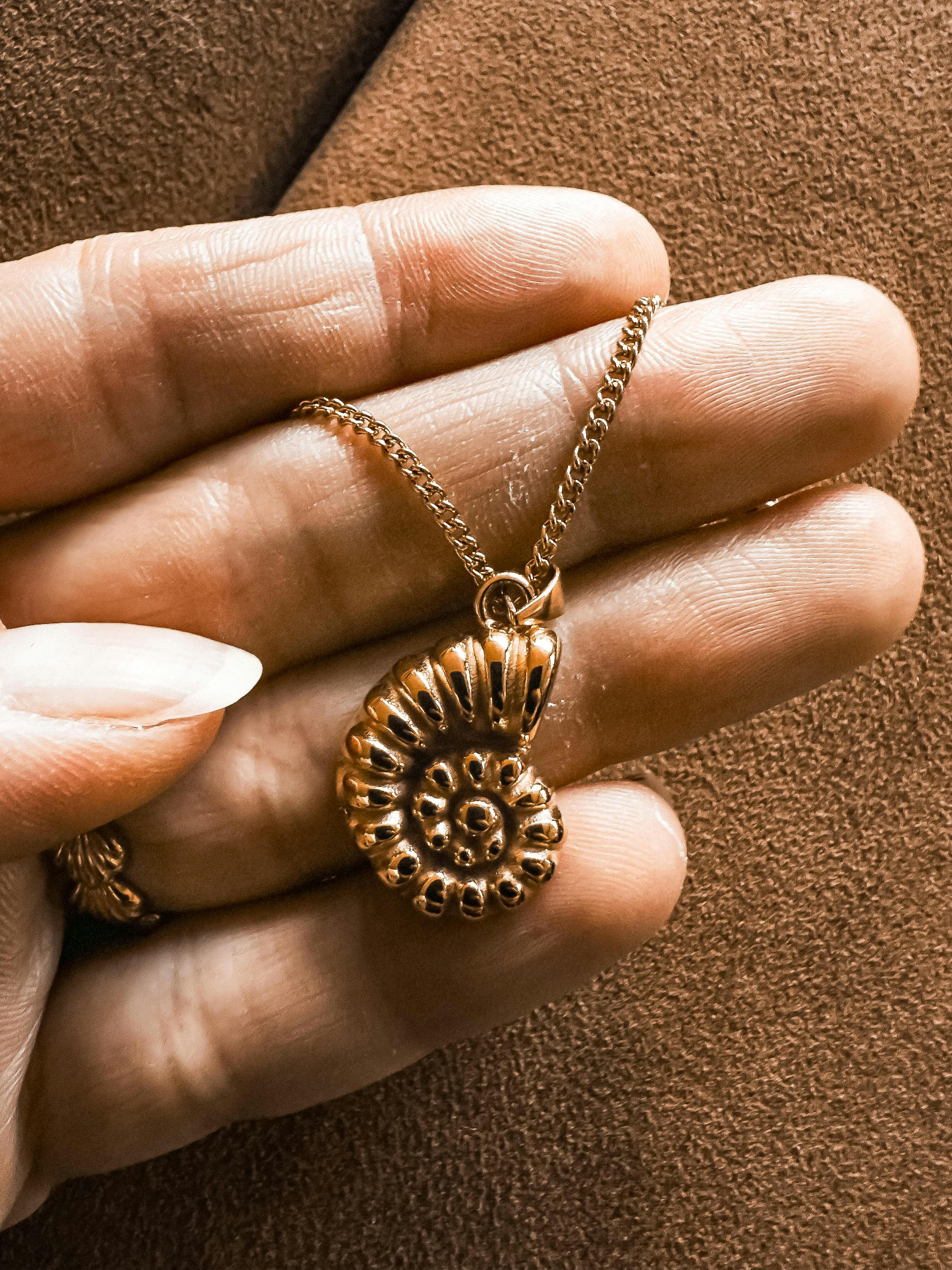 Dieses spiralförmige Schmuckstück spiegelt ein Stück Geschichte des Meeres wider. Es erzählt von der Urzeit, vom Wachsen und von der Ewigkeit.