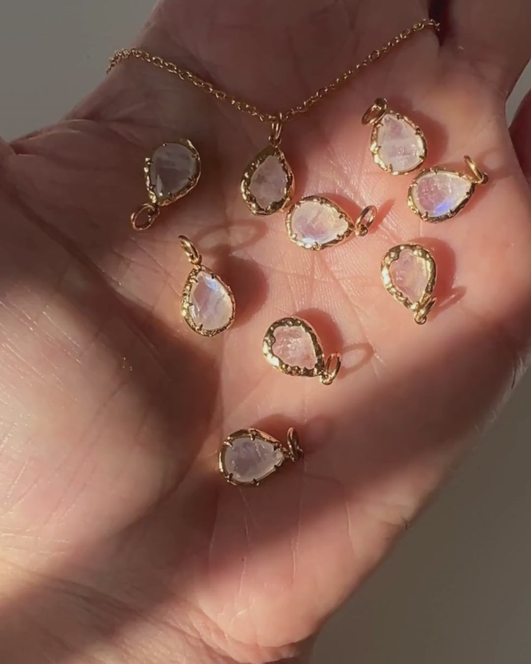 Unsere hochwertigen Drops vereinen sanft organische Formen mit der natürlichen Energie echter Steine. Jeder Stein entfaltet ein einzigartiges Lichtspiel, wenn die Sonne ihn berührt.