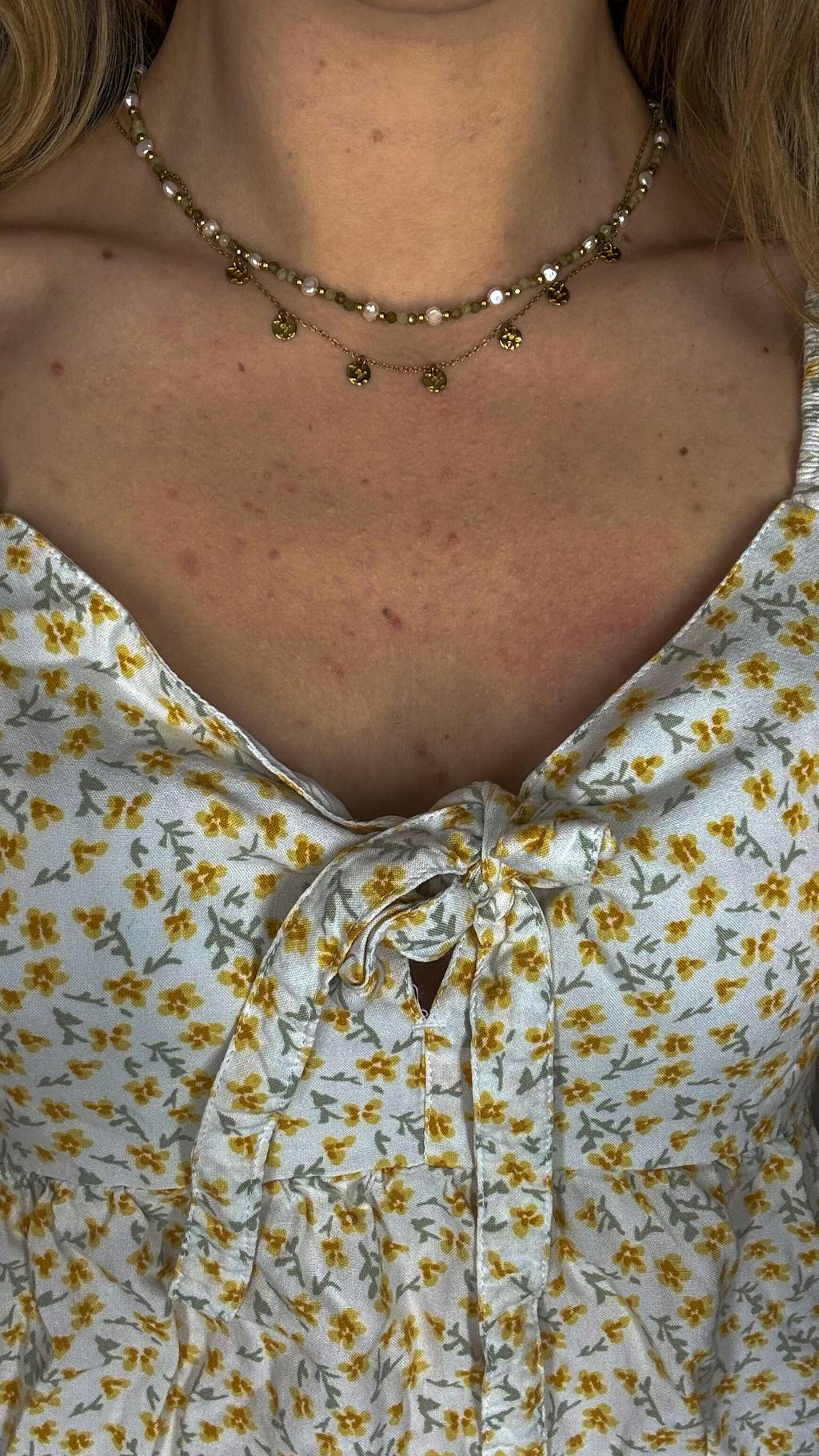 - Da die Kette echte Perlen enthält, empfehlen wir dir nicht regelmässig damit zu duschen oder Sport zu treiben